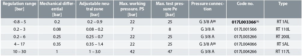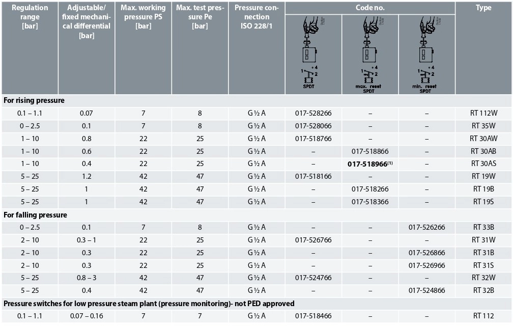 Designation | RT pressure switches |