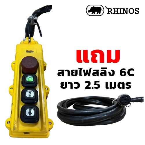 สวิทซ์รอก RHINOS 2ปุ่ม (สีเหลือง)+ON+EMER สินค้าคุณภาพจากไต้หว้นของแท้ 100% สวิทช์ปุ่มกด (Push Button) สวิทช์ปุ่มกดรอกโซ่ไฟฟ้า สายไฟ 6 ไส้ สลิงยาว 2.5 เมตร