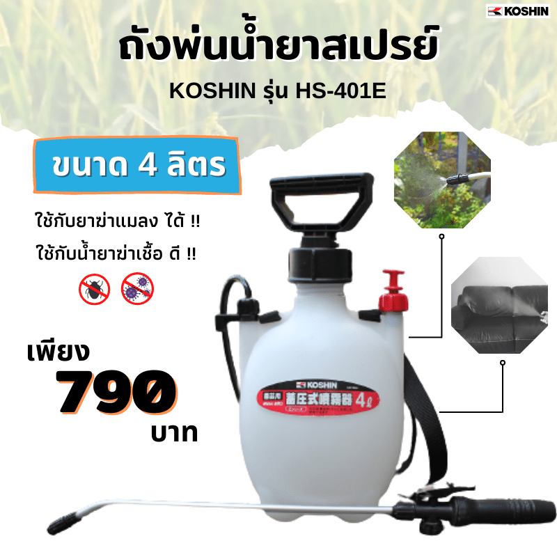 KOSHIN เครื่องฉีดละอองฝอยแรงดันพร้อมสายสะพาย รุ่น HS-401E ผลิตในญี่ปุ่นและประกอบในประเทศจีน ประสิทธิภาพสูง