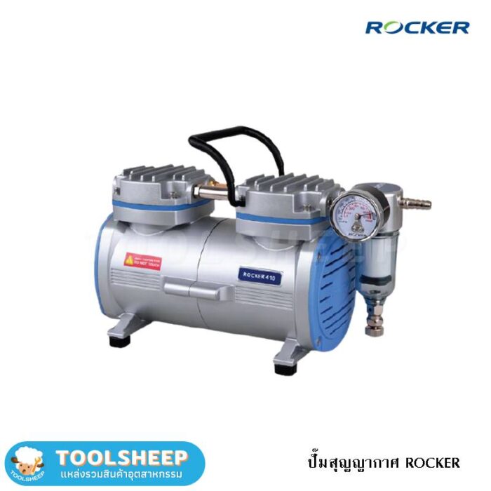 ปั๊มสุญญากาศ ROCKER (Oil Free Vacuum Pump) เป็นปั๊มสูญญากาศแบบขับเคลื่อนด้วยลูกสูบ ไม่ใช้น้ำมันหล่อลื่น และไม่ต้องเปลี่ยนถ่ายน้ำมันเครื่อง จึงทำให้ปราศจากมลพิษจากน้ำมัน ปั๊มสุญญากาศ Rocker ติดตั้งอุปกรณ์ Prote™ Overflow protection ป้องกันการ Overflow ของของเหลวเข้าสู่ตัวปั๊ม , ติดตั้ง Moisture Trap ที่ท่อทางเข้าเพื่อกรองอนุภาค และความชื้น ช่วยยืดอายุการใช้งานของตัวปั๊ม และ Vacuum Regulator สำหรับปรับและควบคุมแรงดูด นอกจากนี้ มอเตอร์ทุกตัวของปั๊มสูญญากาศ ROCKER ยังติดตั้ง Thermal Protection เมื่อตัวเครื่องมีอุณหภูมิที่สูงเกินไป ปั๊มจะหยุดการทำงานอัตโนมัติ และจะกลับมาทำงานอีกครั้งเมื่อเครื่องเย็นลง