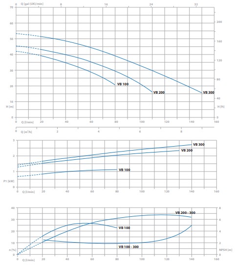 | 1~ | 3~ | l/min | 0 | 10 | 20 | 30 | 40 | 60 | 80 | 100 | 120 | 140 | 150 | |||||||