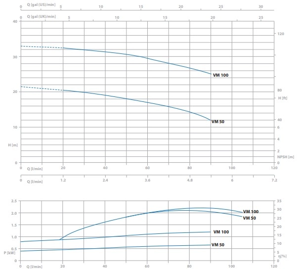 VM 100** VM 100 T** 1 0.74 1.16 1.17 5.7 2.0 1″x1″  – 33 32.5 31.5 29.5 28.5 26.8 25.2
