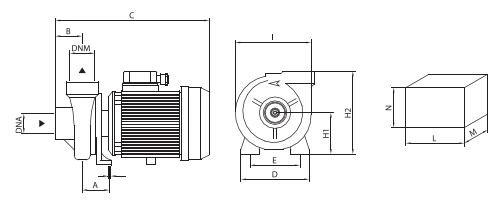 A | B | C | D | E | I | Ø | H1 | H2 | DNA | DNM | N | L | M | Kg | |